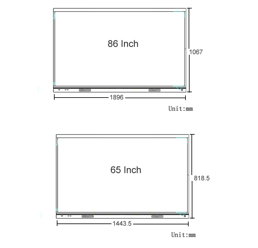 触摸尺寸(长*宽) | 1443.5(H) x 818.5(V)mm | 1896(H) x 1067 (V)mm |
